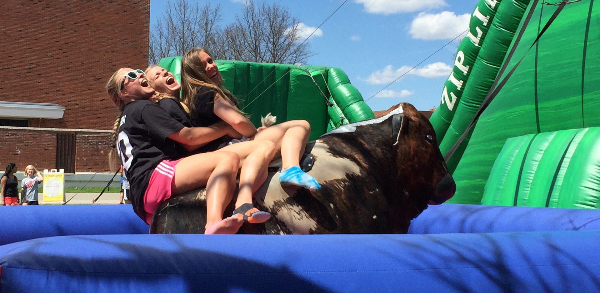 Saddle up and challenge your friend to a bull ride off. This is the ultimate mechanical bull ride since there will be two bulls going at the same time and speed via one controller. Now you can have a bull riding challenge based only on the riders skills not operator favorite.  One rider per bull please.